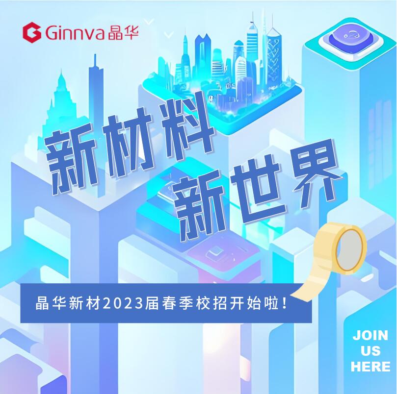 @即將畢業(yè)的你,晶華新材2023屆春季校園招聘 ,開放等你;加入晶華新材,開啟精彩職業(yè)生涯;夯實能力,開掛成長。
